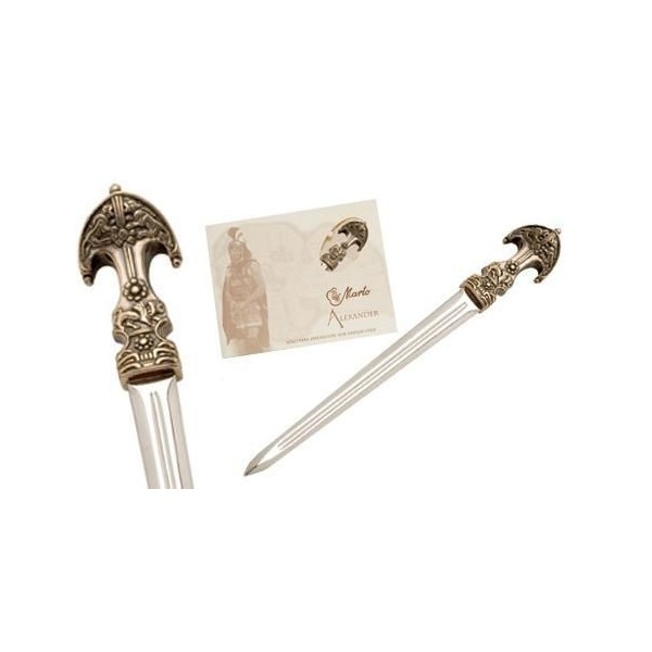 Mini Alexander The Great Sword of Darius Bronze. Sword of the Persian king. Alexander 2004 movie replica sword. Sword of the Persian king. Sword length 7 inches, bronze finish.