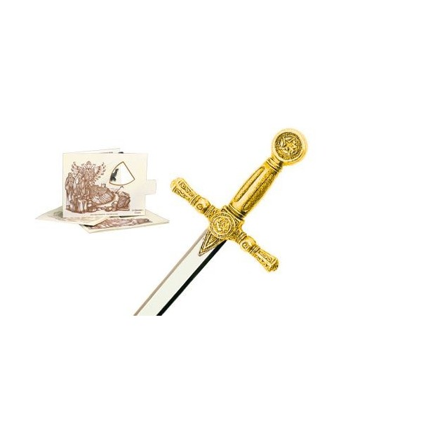 Miniature Masonic Sword Gold by Marto, Toledo. Ceremonial sword of Masonic order. Mini sword with masonic symbols. Golden finish. Overal length: 6 inches.